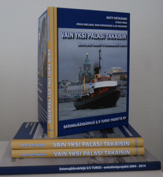 VAIN YKSI PALASI TAKAISIN, Höyrylaiva Turson 70 ensimmäistä vuotta kirja on saanut hyvän vastaanoton alan harrastajien keskuudessa. Kirja on varsin kattava teos sotakorvausalus Turson värikkäästä historiasta ja noin 10 vuoden entisöinti- ja kunnos-tusprojektista. Mukana on lisäksi artikkelit Turson juhlaristeilyistä. Alus vieraili Pietarissa 2011, Tallinnassa Merimuseon avajaisissa 2012 ja Höyryjäänmurtaja Suur Töll’n 100 vuotisjuhlissa 2014 sekä viime kesänä Kotkan Meripäivien yhteydessä Merimuseo Vellamon vieraana Kotkassa.