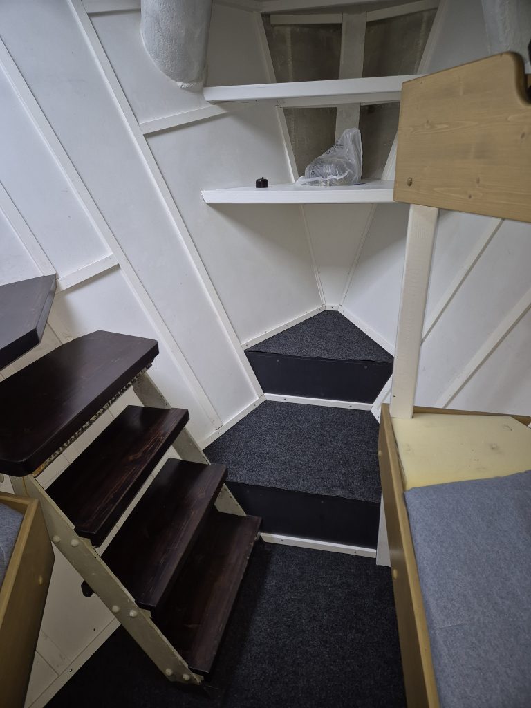 Maaliskuussa Erkki Laaksonen asensi Turson varastokonttiin hankitut metallihyllyt. Varaston järjestelyt vielä osin kesken, mutta saataneen kuntoon tulevan syksyn aikana. Puheenjohtaja viimeisteli toukokuussa miehistöhytin lattian listoineen ja tila on sähkötöitä lukuun ottamatta valmis.