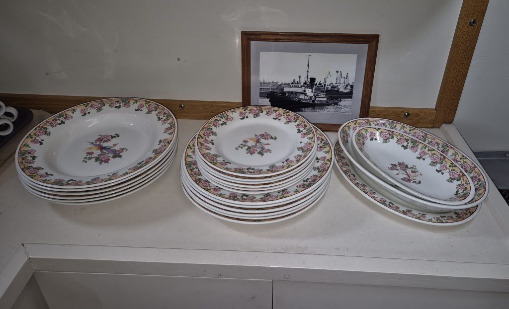 Saimme edellisenä vuonna lahdesta 2- pientä kulhoa, jotka lahjoittaja oli selvittäneet olleen Turson alkuperäisastioita. Maaliskuussa Vesa Hanhela Oulusta otti yhteyttä ja kertoi, että hänellä on setti astioita, jotka ilmeisesti ovat kuuluneet Tursolle. Hän lahjoitti astiaston Tursolle. Oli helppo todeta, että molemmat lahjoitukset olivat samaa sarjaa, kuviot olivat aivan samat. Lahjoittajat olivat tehneet tarkkaa työtä selvittäessään astioiden alkuperää.