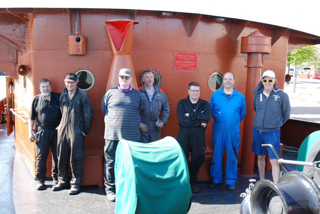 Laajojen korjaustöiden takia päätimme lämmittää ja testata aluksen sekä suorittaa koeajon 3.6 ennen varsinaisia jäsenristeilyä. Meille oli tulossa pieni joukko vierailijoita koeajolle mukaan, mutta se peruuntui viime hetkellä ja näin päätimme tehdä koeajon laiturissa. Miehistöä oli runsaasti paikalla, Santtu Ahonen, Caj Björkbom, Petri Korpivaara, Sami Kurhela, Erkki Laaksonen, Juha Laine, Olavi Manninen, Juhani Martti, Pekka Snellman, Ari Reunanen, Timo Turunen, Jukka Kallio, Immo valo ja Jari Paananen. Osa miehistöstä kuvassa.