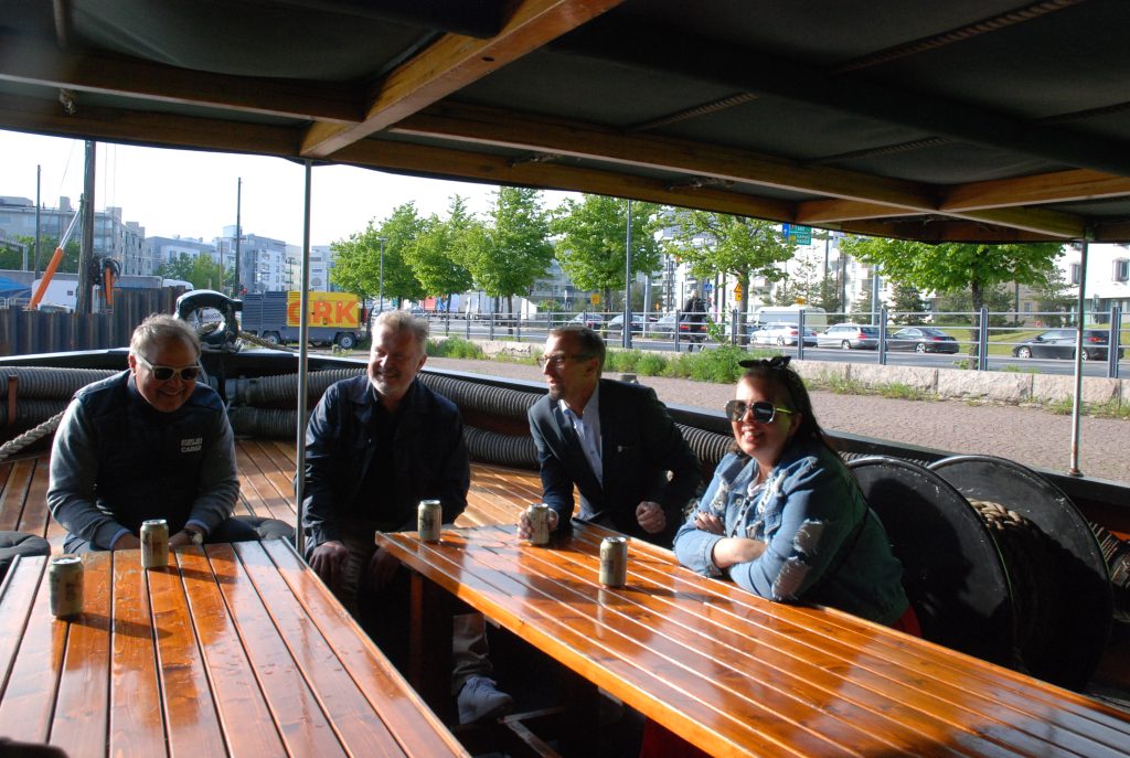 Jukka Kallio järjesti tilaisuuden Tursolla Håkansin pitkäaikaisen kipparin Pekka Gustafsson’in eläkkeelle lähdön kunniaksi. Häneltä olemme saanut aina hinausapua siirtoihin aina kun olemme tarvinneet. Vieraat olivat kaikki Jukan työ- ja yhteistyökumppaneita Helsingin Sataman työuran ajalta. Mukana tilaisuudessa oli myös hiljattain eläkkeelle jääneitä, myös meille tuttuja henkilöitä merenkulun piiristä, Jari Talja, ent. Håkansin operatiivinen johtaja, Ronald Forssell, C&C Port Agencyn perustaja ja ent. toimitusjohtaja, Jukka Ketonen, Finnpilotin entinen aluevastaava ja Antti Pulkkinen, entinen Helsingin Sataman satamamestari. Arvovaltaisia vieraita Tursonkin taipaleelta