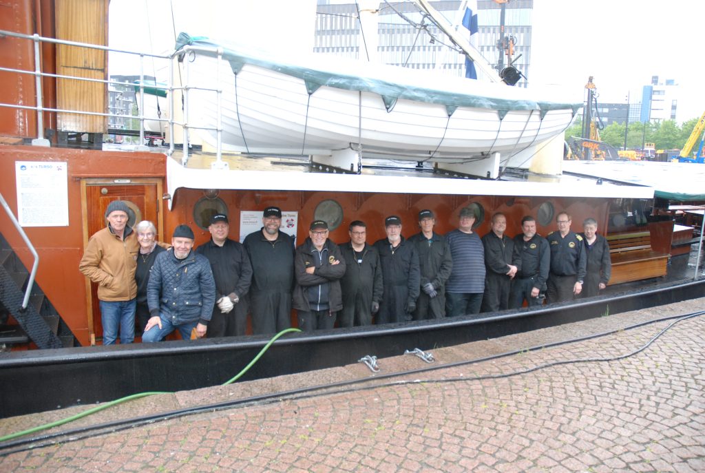 Kevätkunnostustalkoot järjestettiin omalla laituripaikalla 23.-25.5.2025 ja mukana oli hieno joukko aktiiveja. Tekninen ryhmä keskittyi talkoiden aikana kone- ja kattilahuoneen asioihin ja muille talkoolaisille jaettiin eri tehtäviä. Turson ulkokylkien ja -laitojen maalaaminen oli suunniteltu tehtäväksi telakan rannassa ennen aluksen siirtoa, mutta kelit keväällä olivat liian kylmiä maalausten suorittamiseen ja töitä jouduttiin siirtämään. Saimme telakan työlautan lainaksi ja Jukka Kallio ja Jari Paasonen suorittivat ulkokylkien ja laitojen maalauksen, talkoiden yhteydessä. Samoin komentosillan ruskeat seinien maalarina toimi Kalle Äänismaa. Sisätilat putsattiin ja hytit kunnostettiin risteilykuntoon. Mukana talkoissa oli eri vaiheissa Caj Björkbom, Otto Haapa, Petri Korpivaara, Sami Kurhela, Erkki Laaksonen, Juha Laine, Olavi Manninen, Juhani Martti, Kalle Äänismaa, Immo Valo, Jukka Kallio, Jari Paasonen, Timo Turunen, Ari Reunanen, Santtu Ahonen ja Pekka Snellman. Valitettavasti talkoissa ei saatu