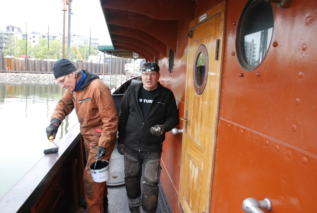 Keväällä talkoissa saimme aluksen kyljet maalattua, mutta kannen maalausta emme ehtineet tehdä. Jukka Kallio otti urakan kannen maalauksesta kesäkuussa ja sai koko kannen maalattua. Myös Sampo Rajala otti keväällä urakaksi huoltaa ja lakata kaikki Turso mahonkiovet, joiden lakkauksia olimme laiminlyöneet ja siksi ovet oli hiottava kunnolla ennen uudelleen lakkausta. Suuresta työstä johtuen ovet irrotettiin yksi kerrallaan ja toimitettiin Sampon autotalliin, jossa hän on tehnyt hionnan ja lakkauksen omassa tallissaan. Valtaosa ovista on tätä tiedotetta kirjoitettaessa jo tehty, mutta projekti jatkuu.