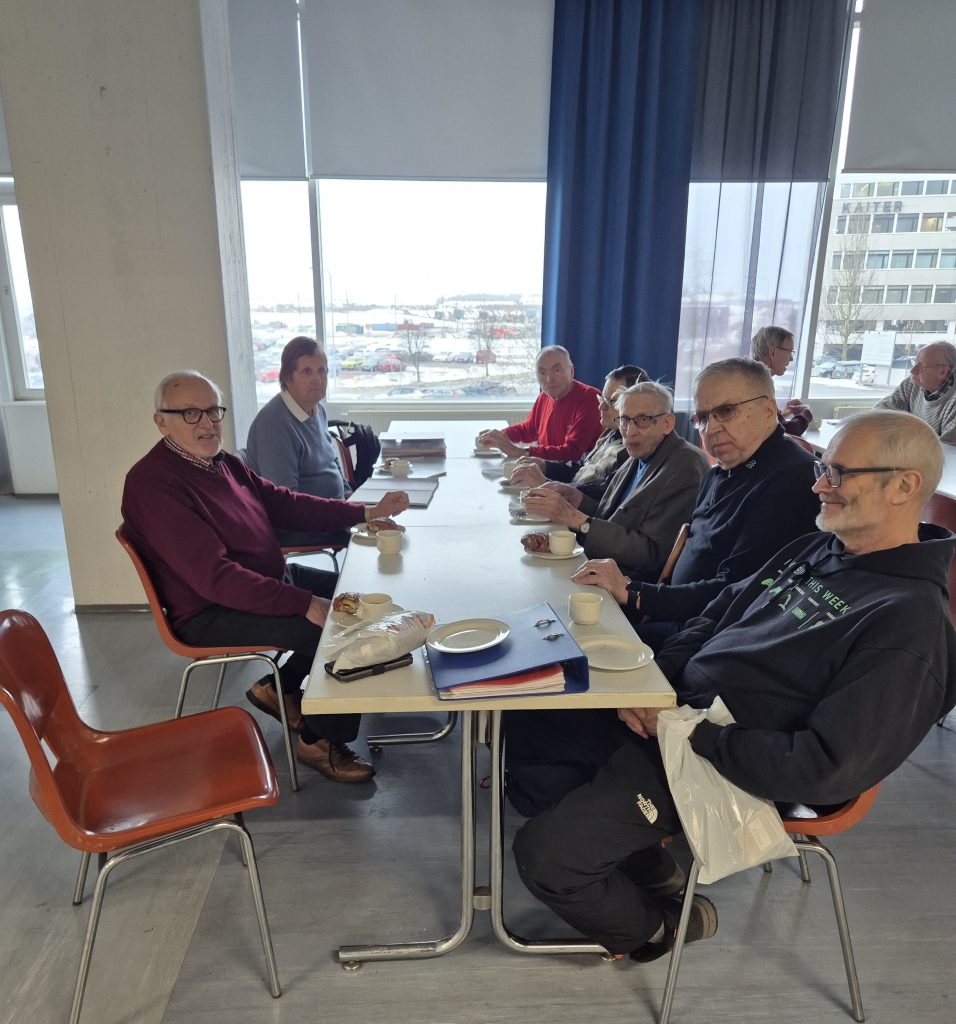 Eläkekerhon puheenjohtaja Markku Kuikka kutsui Turso yhdistyksen puheenjohtajan pitämään esityksen höyryharrastuksesta ja erityisesti s/s Turson vaiheista. He pitävät tapaamisia telakalla aina kuukauden ensimmäisenä tiistaina. Varsinaisen kokouksen ja lounaan lisäksi tilaisuuksissa on useimmiten erilaisia esitelmiä, tällä kertaa oli Turso aiheena. Marko Kettunen antoi vihjeen tapaamisen järjestelyyn. Esitys alkoi Suomen Höyrypursiseuran toiminnan esittelyllä ja sitten loppuaika keskityttiin Tursoon. Esitys kesti n. 2 tuntia, jonka jälkeen juotiin kahvit. Mielenkiintoista nähdä kuinka monta uutta osaajaa, saamme liittymään mukaan noin 40 osallistujan joukosta. Kuvissa osa osallistujista.