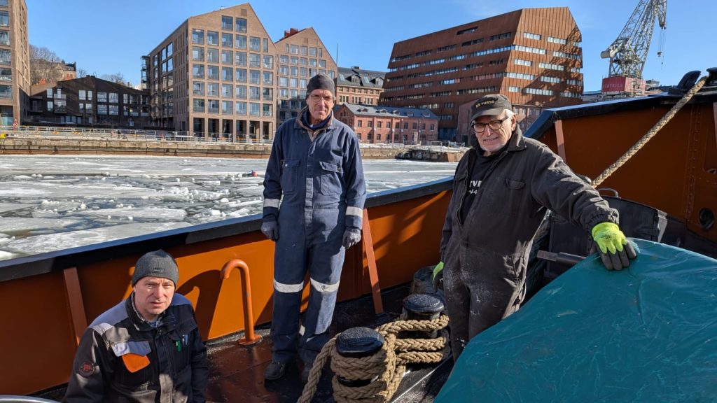 Kunnostustöitä on tehty pitkin talvea pienen aktiivijoukon avulla. Tänä talvena hanketta helpotti osin se, että saimme telakalta käyttöömme aivan Turson laituripaikan lähetä lämmintä sisätilaa. Olemme siirtäneet alukselta mm. irrotetun pumpun perusteelliseen korjaukseen sekä muutamia putkia on irrotettu huoltoon ja osin uusittavaksi. Myös mahonkiovien hionnat ja lakkaukset sekä messinkiosien puhdistukset tehdään kevään aikana valmiiksi. Tekniikan puolella on useita muitakin kunnostuskohteita työn alla. Alla ainoastaan muutama otos osasta kohteita ja puuhamiehiä.
